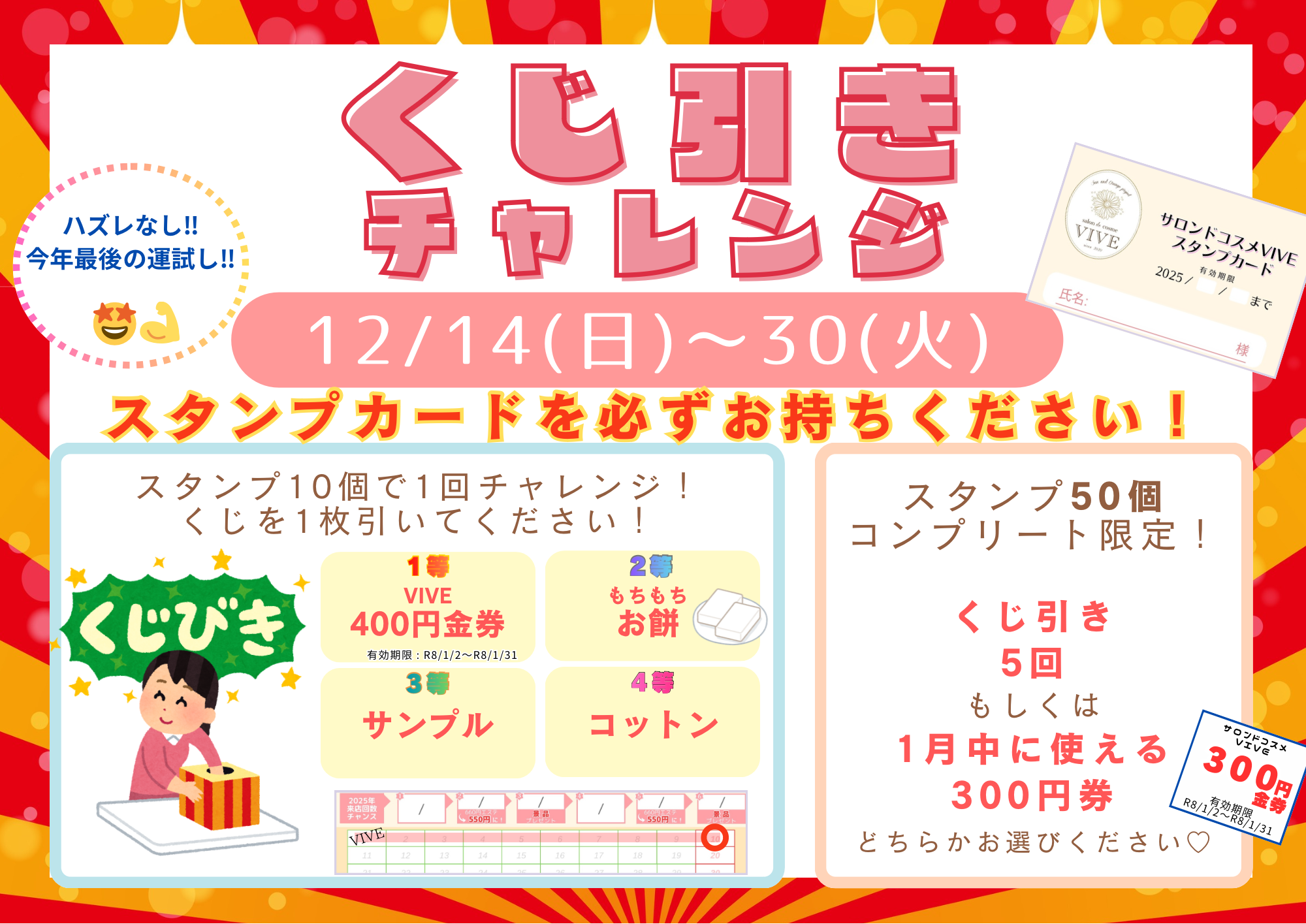 スタンプを10個貯めるごとに1回、くじ引きに挑戦💥