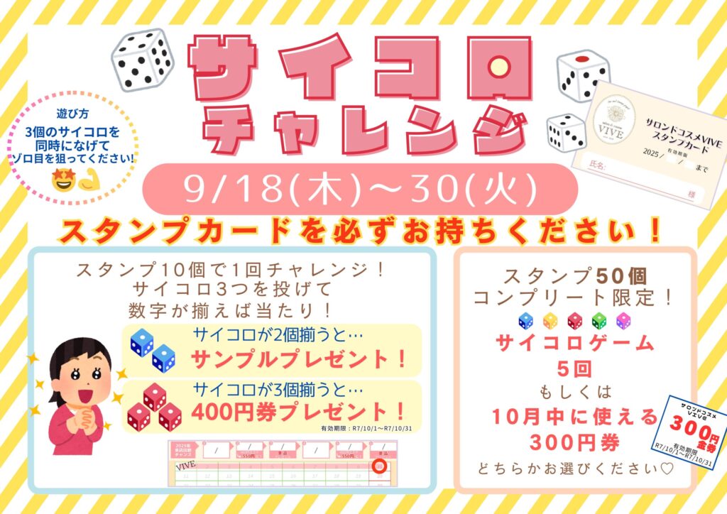 スタンプを10個貯めるごとに1回、サイコロチャレンジゲームに挑戦💥